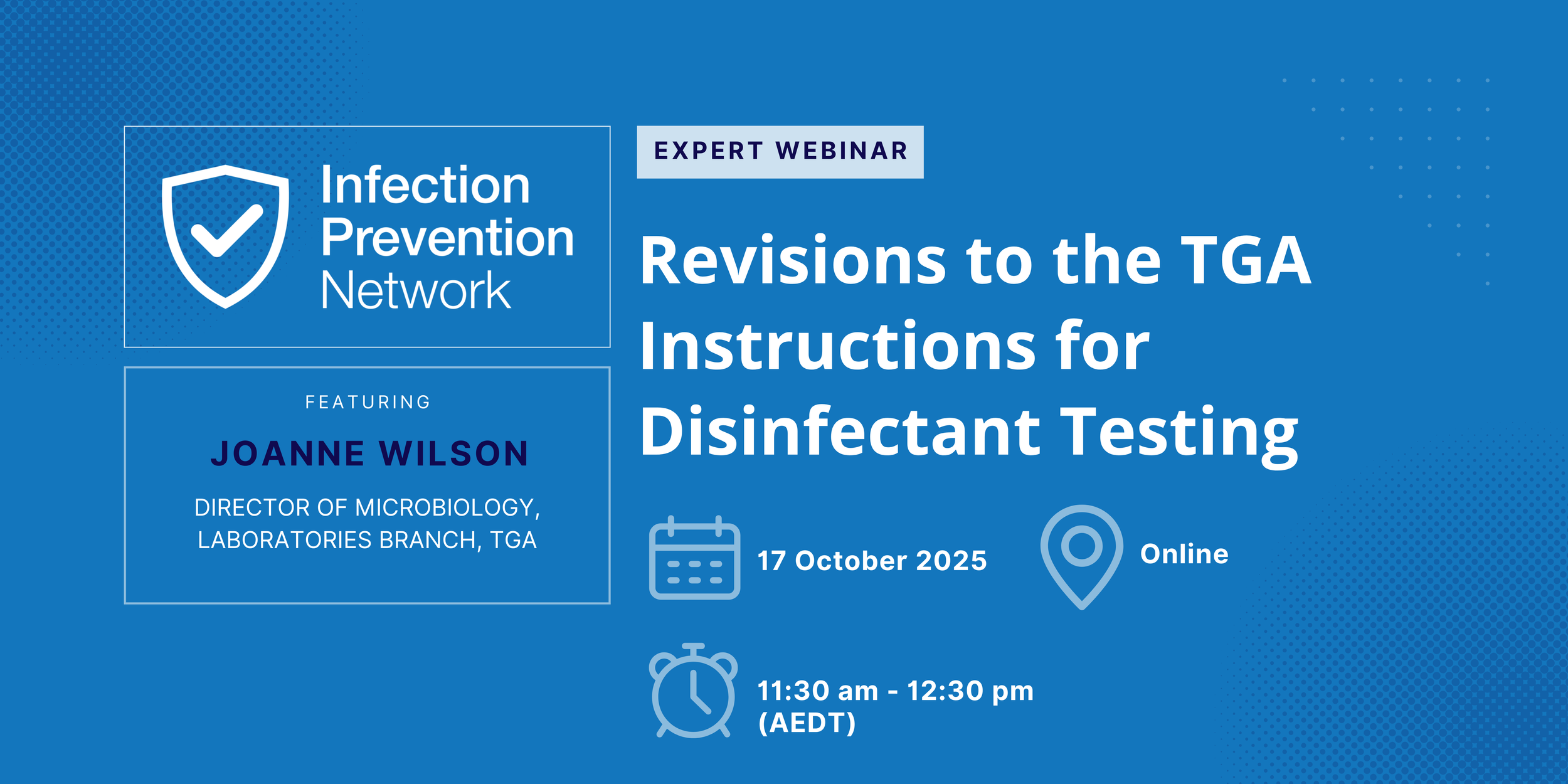 The Infection Prevention Network (IPN) is excited to be hosting an expert webinar on the recently published TGA Instructions for Disinfectant Testing with Joanne Wilson, Director of the Microbiology Section at the TGA.
